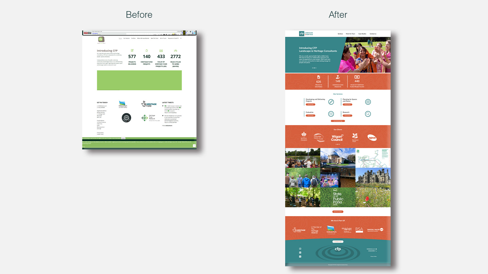 Site-ul web reproiectat al CFP oferă o platformă clară și modernă, care reflectă expertiza și impactul lor în sectorul patrimoniului din Regatul Unit. Cu o structură intuitivă, o identitate vizuală puternică și o construcție flexibilă, site-ul susține atât implicarea utilizatorilor, cât și gestionarea conținutului pe termen lung pentru echipa CFP.