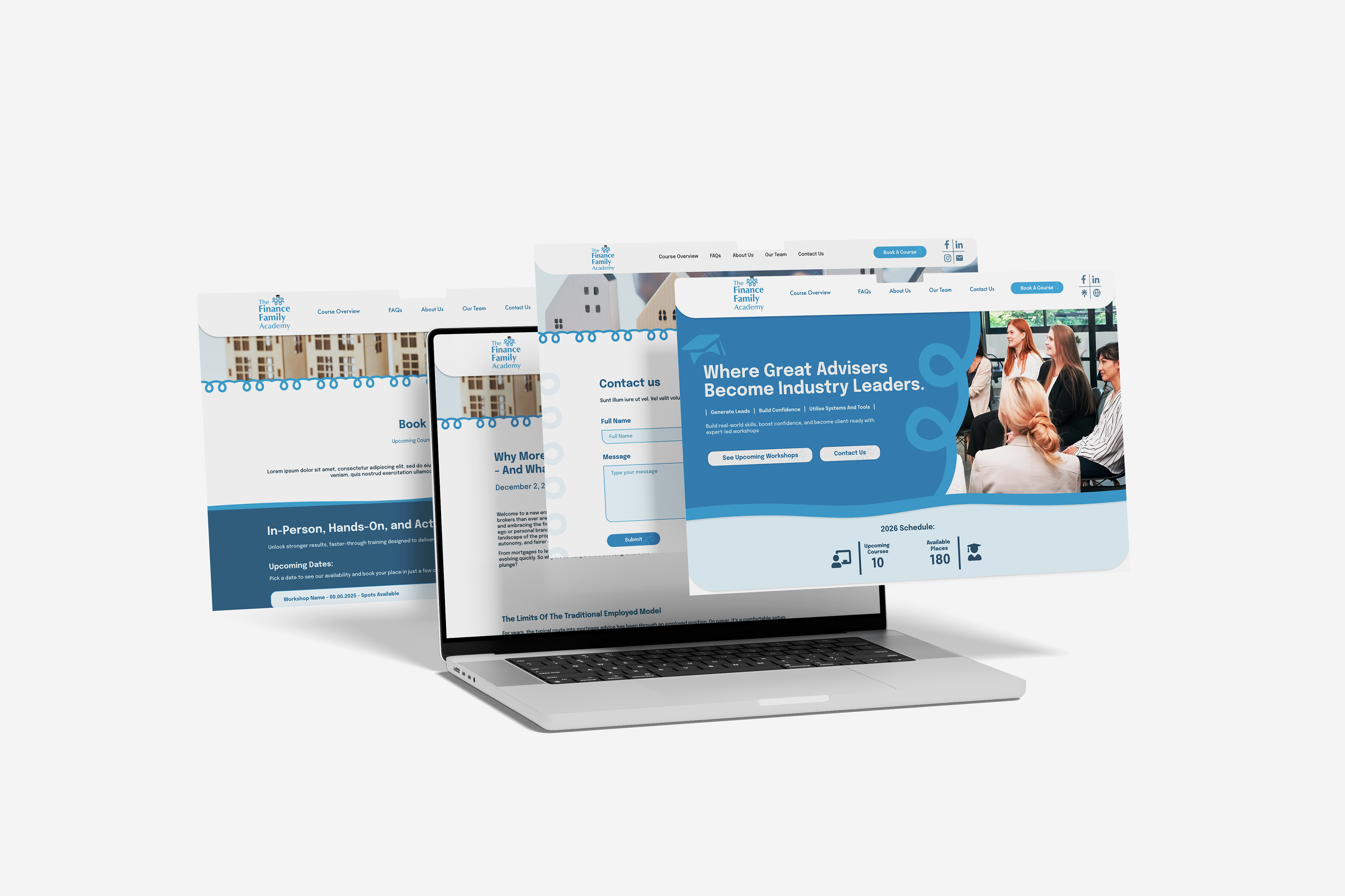 The Finance Family Academy is based in Kidderminster and specialises in delivering professional training courses for accredited mortgage brokers looking to deepen their knowledge and gain practical experience before progressing in their careers. We were initially approached by their parent company, The Finance Family, a mortgage advisory firm, to create a dedicated website for the Academy’s upcoming courses.